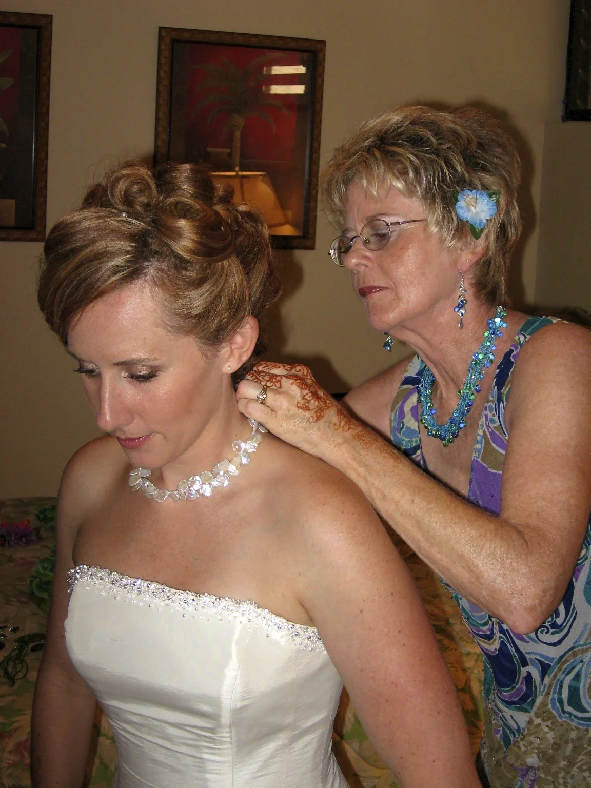 that day was filled with an amazing sunrise, yoga on the patio, makeup, hair, pineapple eating and lot of laughing while getting ready for our afternoon ceremony. i slept at the condo my parents were staying at and didn't see luc until the ceremony. the day before, my mom and i had traditional hawaiian henna drawn on our arms, which was one of my very favorite things we have ever done together!