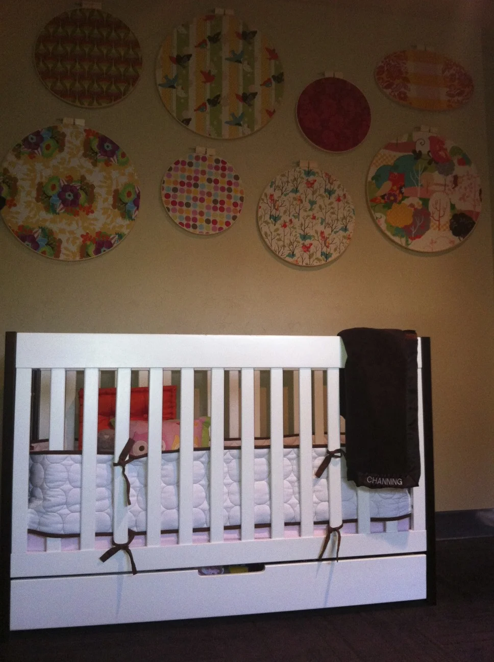 i love color and didn’t want to limit myself when i began working on her nursery. i didn’t want it feeling too girly and knew i wanted more of a nature theme - owls and birds were a main focus. we are more contemporary in our furniture choices throughout the house, but i wanted a little whimsy in here as well. i started with the fabrics used to make these fabric hoops.